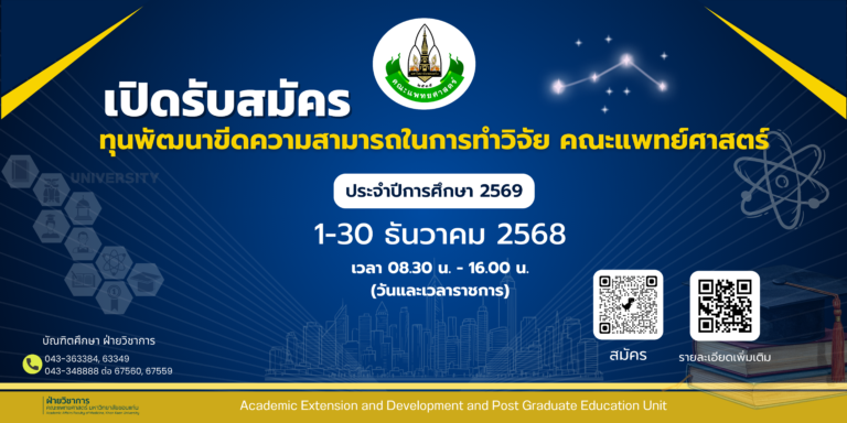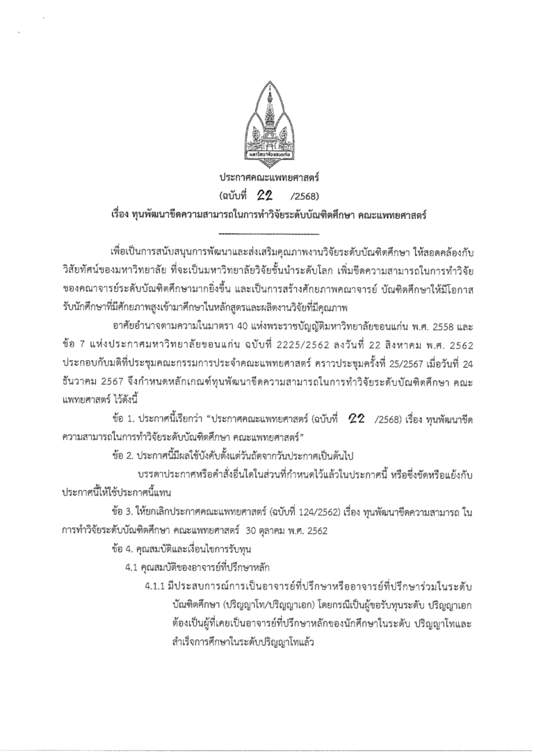 ประกาศฉบับที่ 22/2568 เรื่องทุนพัฒนาขีดความสามารถในการทำวิจัยระดับบัณฑิตศึกษา คณะแพทยศาสตร์Read more→