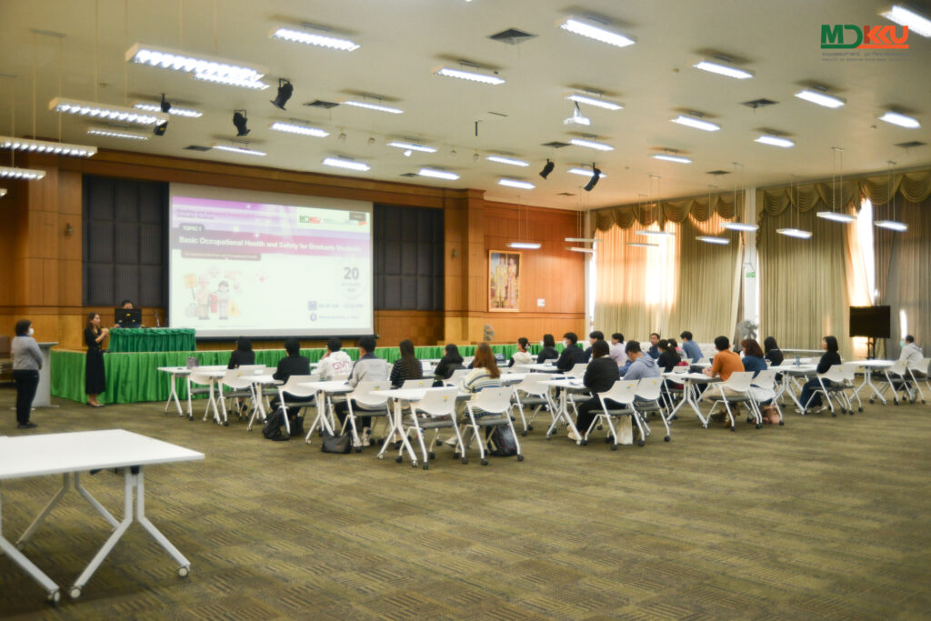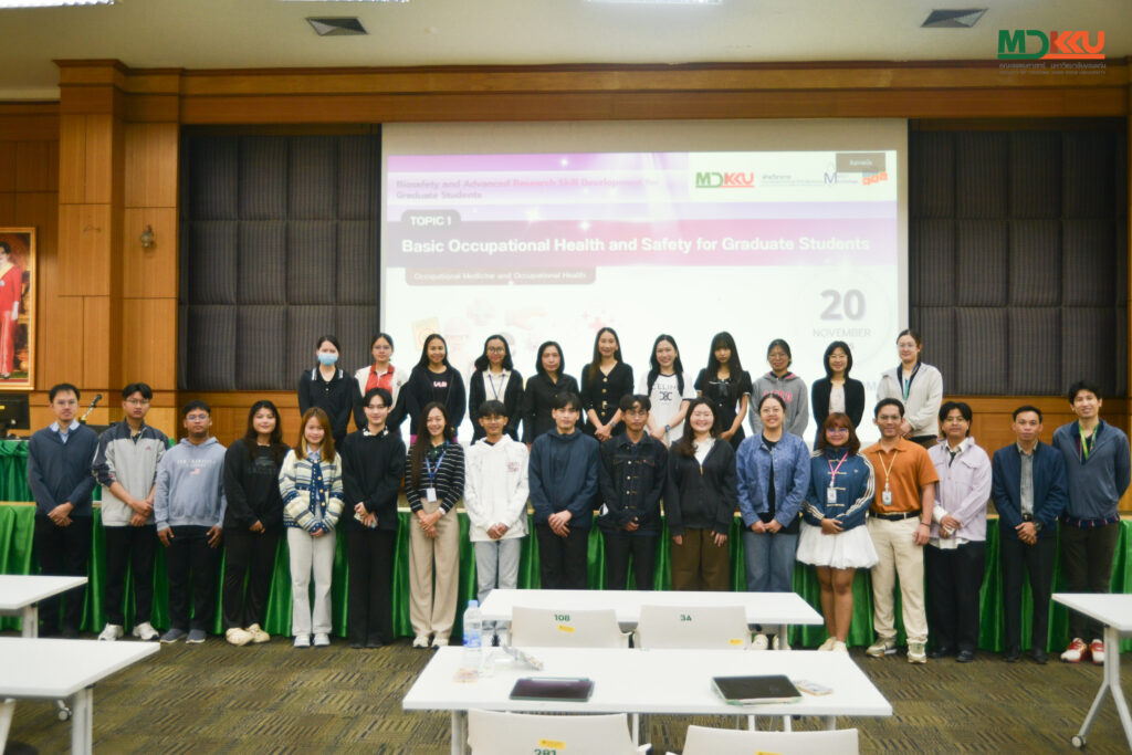 20 พฤศจิกายน 2568 ฝ่ายวิชาการ คณะแพทยศาสตร์ มหาวิทยาลัยขอนแก่น โดยหน่วยส่งเสริมพัฒนาทางวิชาการและการศึกษาหลังปริญญา ร่วมกับสาขาวิชาจุลชีววิทยาทางการแพทย์แม่นยำ และสาขาวิชาอาชีวเวชศาสตร์และอาชีวอนามัย จัดอบรม Biosafety and Advanced Research Skill Development for Graduate Students ในหัวข้อ Basic Occupational Health and Safety for Graduate Students กิจกรรมจัดขั้น ณ ห้องประชุมมิตรภาพ ชั้น 3 อาคารเรียนรวม
